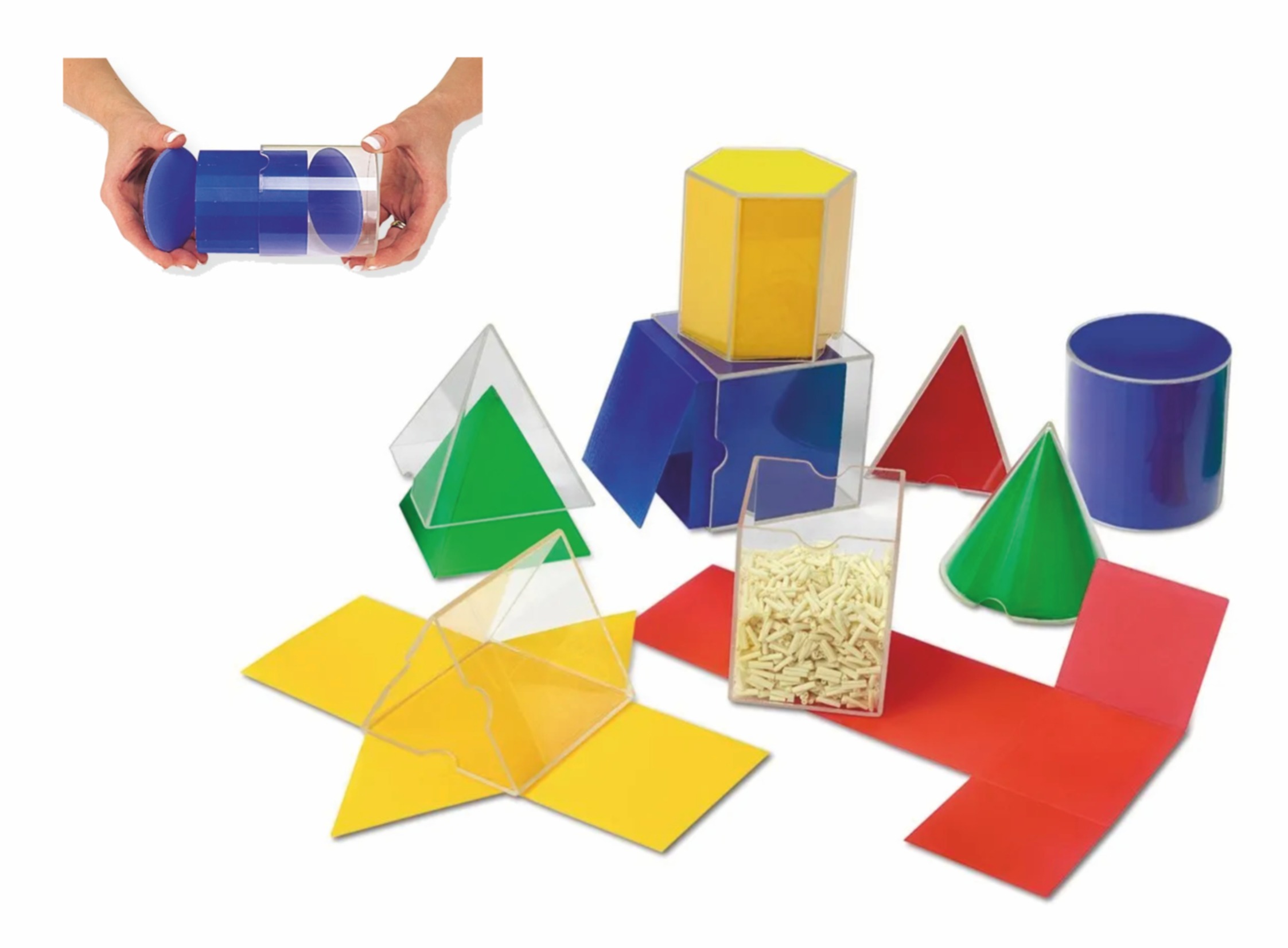 Somit ist eine Flächendarstellung sowie Volumendarstellung möglich. Auch eine Befüllung der Körper ist bei diesem geometrischen Körper-SET kein Problem. Die Höhe je Körper ist ca. 8cm.