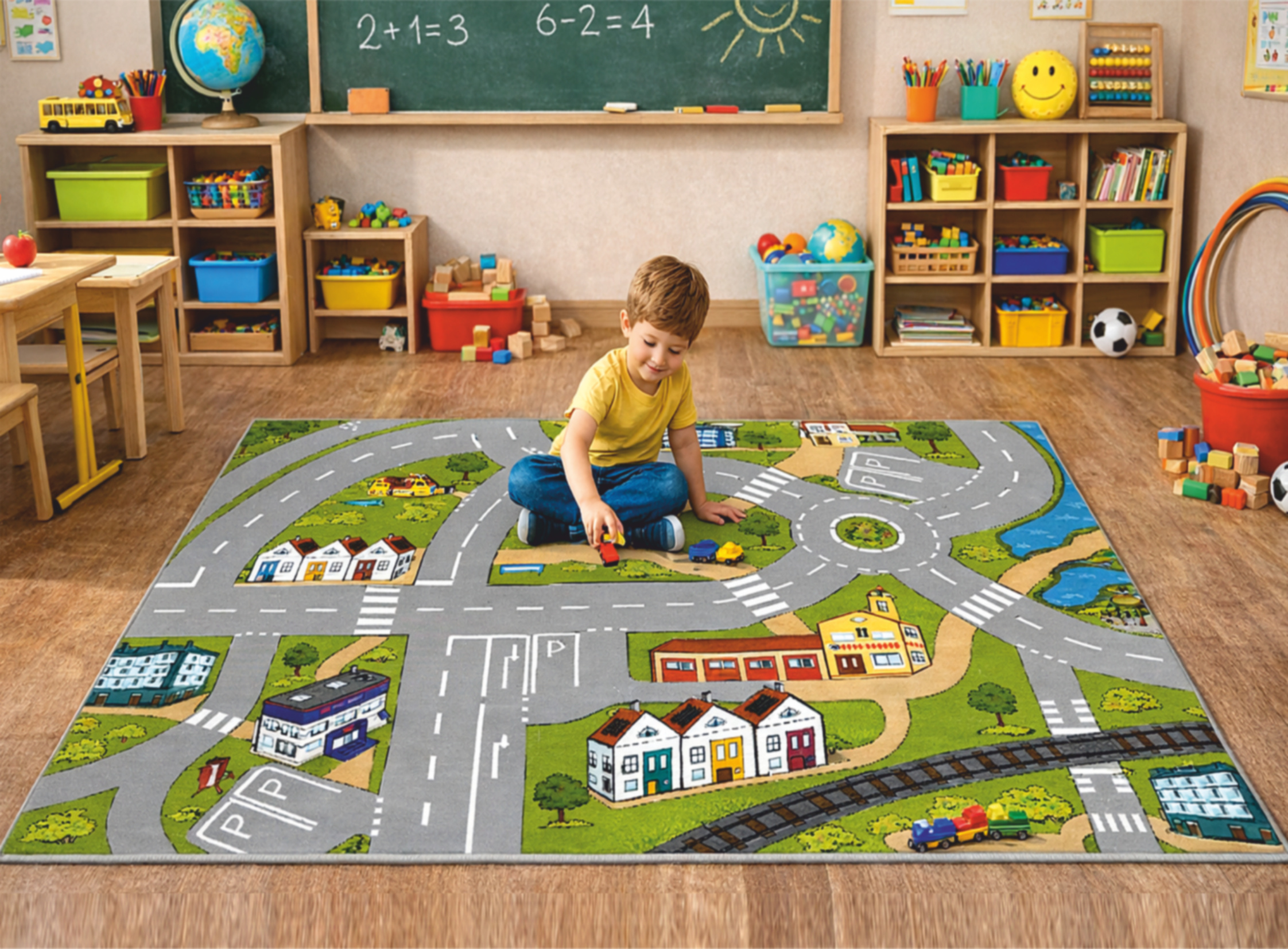 Dieser Verkehrsübungs- Lernteppich veranschaulicht den SchülerInnen die Verkehrsregeln, optimal als Vorbereitung auf die Fahrradprüfung.